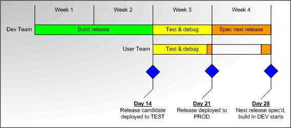 As per below figure, we chose to go with a monthly deployment schedule. Key factors that played into this decision: